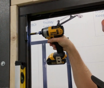 Following the installation of the top and bottom tracks, the jambs should be drilled and fitted square with both tracks. The jambs should be flat and level - any twisted or uneven jambs could prevent the bifolds from operating correctly and could compromise the doors thermal efficiency. Jamb to track connectors should also be fitted tightly against top and bottom tracks.