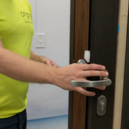 For the locking system to operate properly and be completely watertight, there should be a consistent gap between lead door and locking jamb that fits the yellow shim. The measurement should be consistent up the full length of the door. Pay close attention to labels that indicate the correct positioning for shims. Also make sure the gap is the same on inside and outside. If that is not the case, then the jambs are twisted.